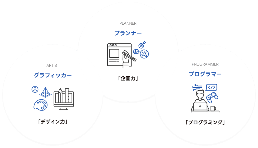 ゲーム業界で活躍する人材を目指す3専攻
