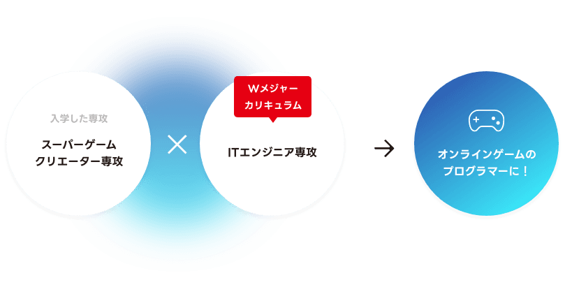 入学した専攻に加えて、希望で他専攻の授業も選択できる「Wメジャーカリキュラム」。